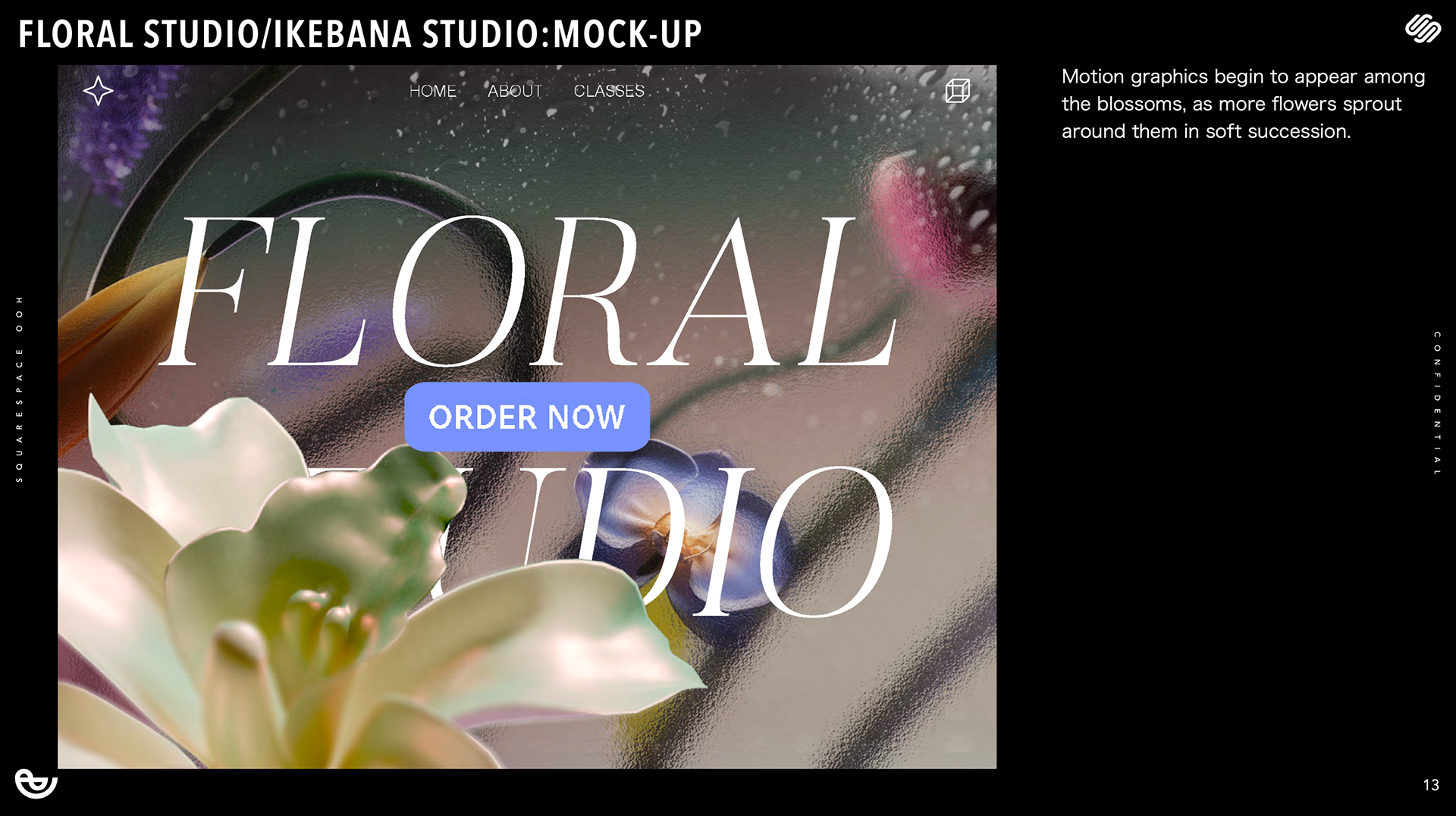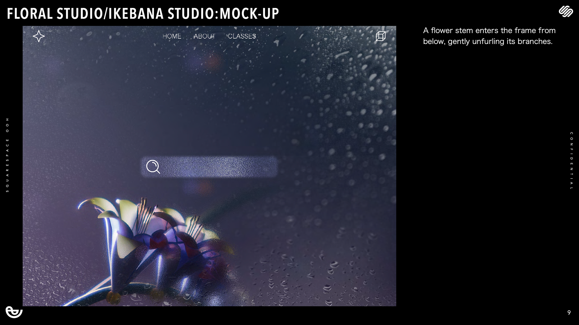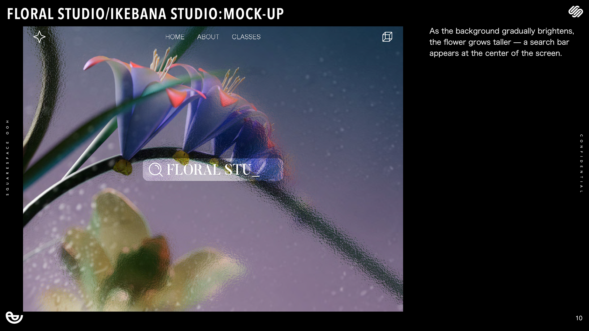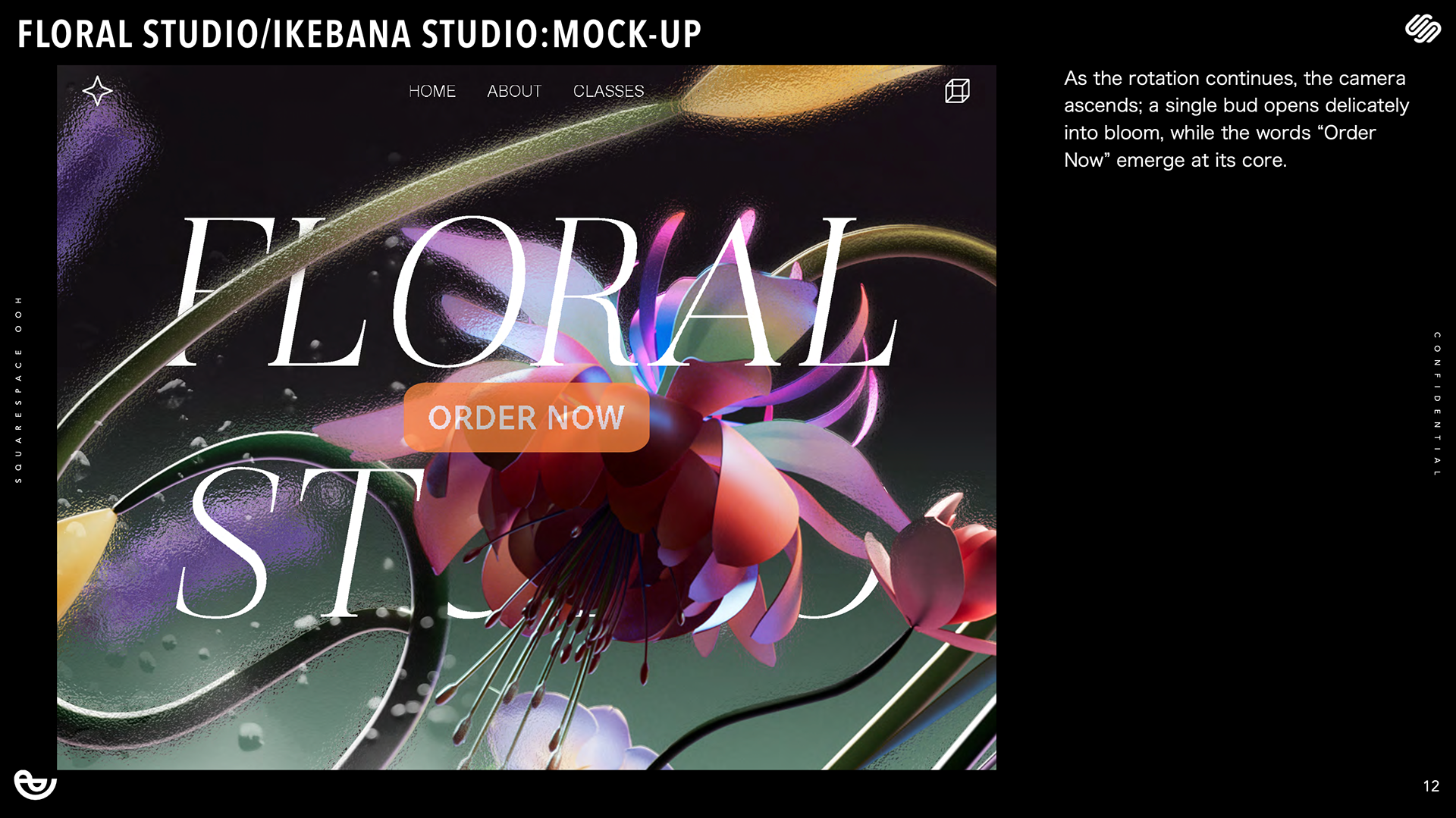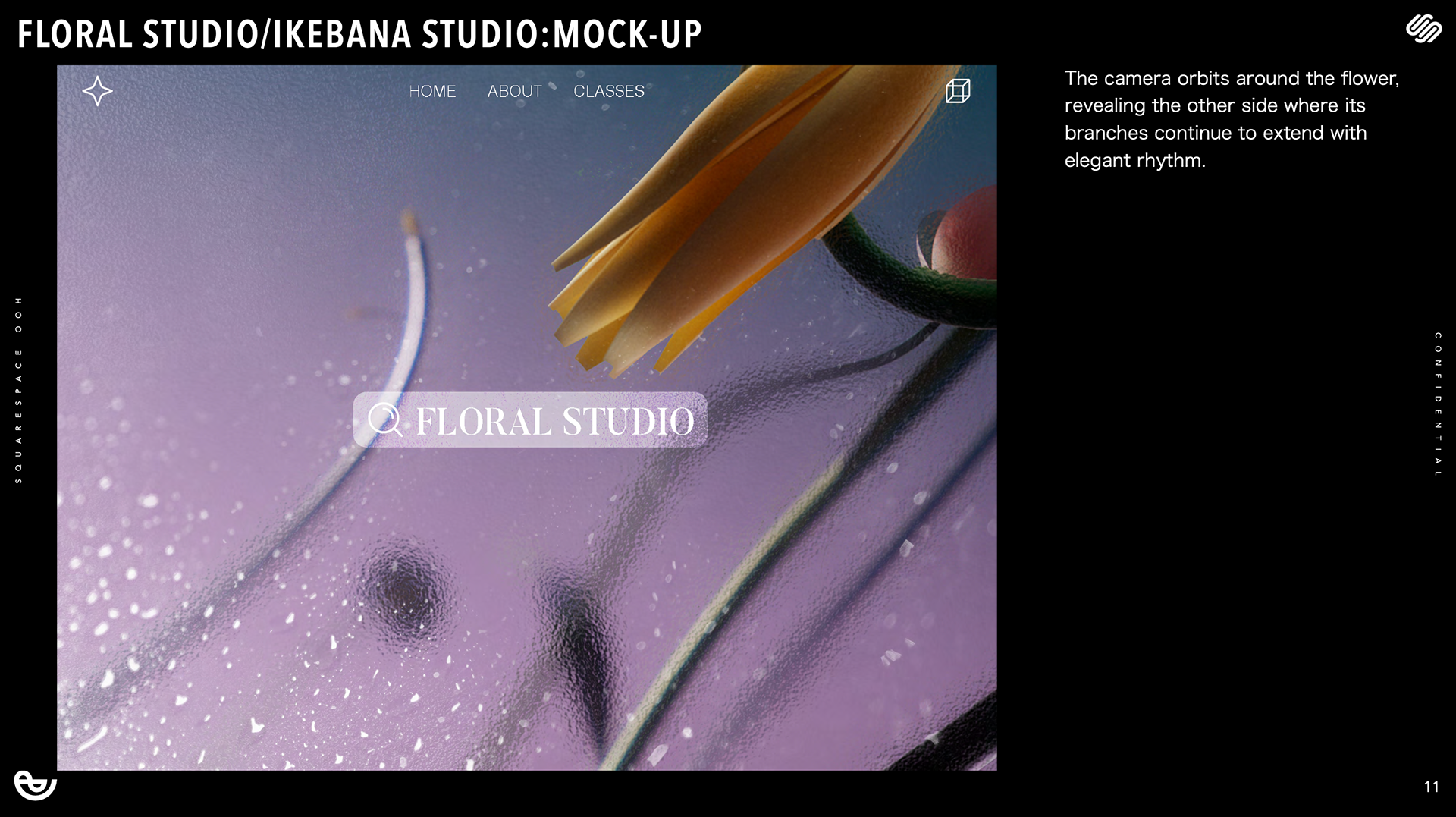 Focusing on a fictional floral studio scenario, the visual narrative translates the act of website creation into an organic process of growth — beginning from a single sprouting stem and evolving into a fully realized digital brand environment.
